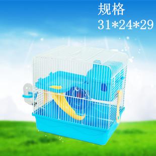 小寵物用品倉(cāng)鼠籠子套餐雙層豪華別墅便攜手提倉(cāng)鼠籠(藍(lán))